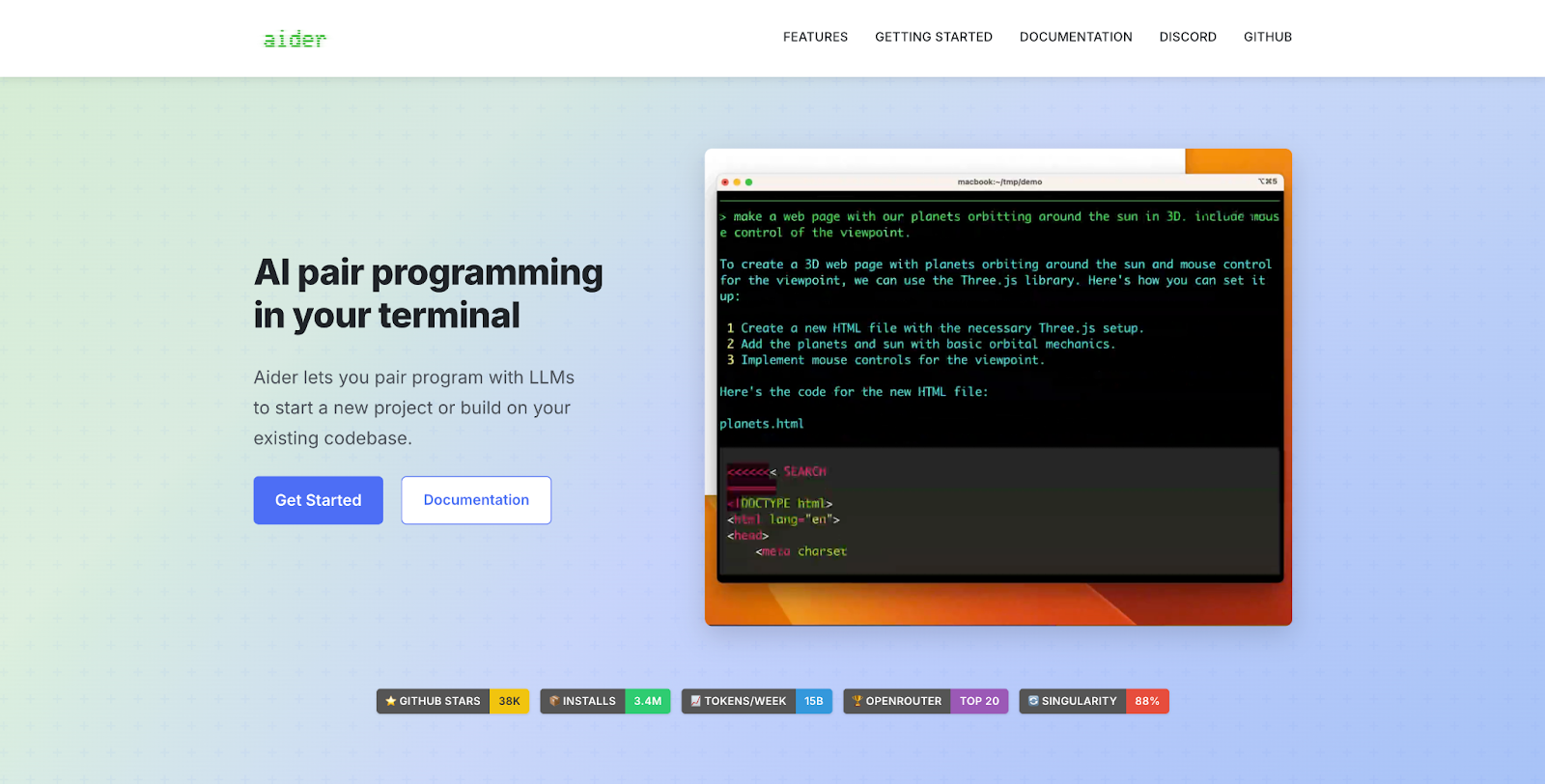 Aider provides free, open-source AI pair programming with support for multiple frameworks and automated debugging workflows.