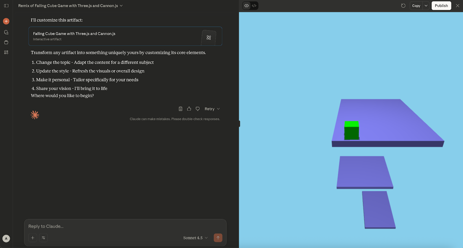 Best for: Rapid prototyping, educational projects, and small interactive components where conversational development is preferred.